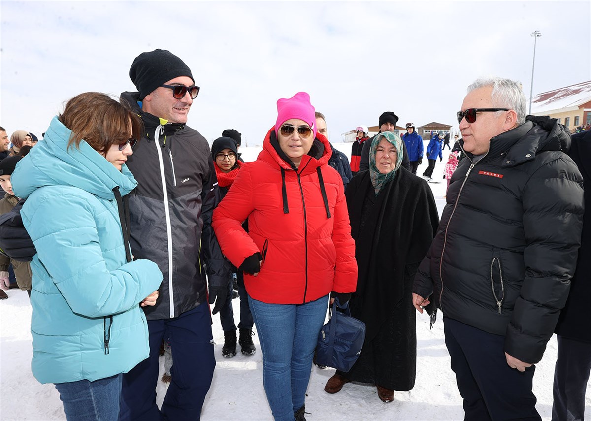 Vali Şimşek, hafta sonunu ve sömestr tatilini Yıldız Dağı Kayak Merkezi"nde değerlendiren vatandaşlarla da sohbet etti.