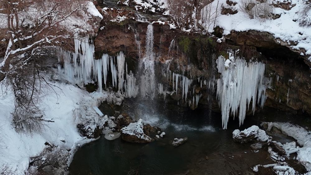 Sivas"ın doğal güzelliklerinden Yıldız Şelalesinde dondurucu soğukların etkisiyle buz sarkıtları oluştu. Şelalenin kristalize sarkıtları ve karlı kaplı çevresi adeta görsel şölen sundu.