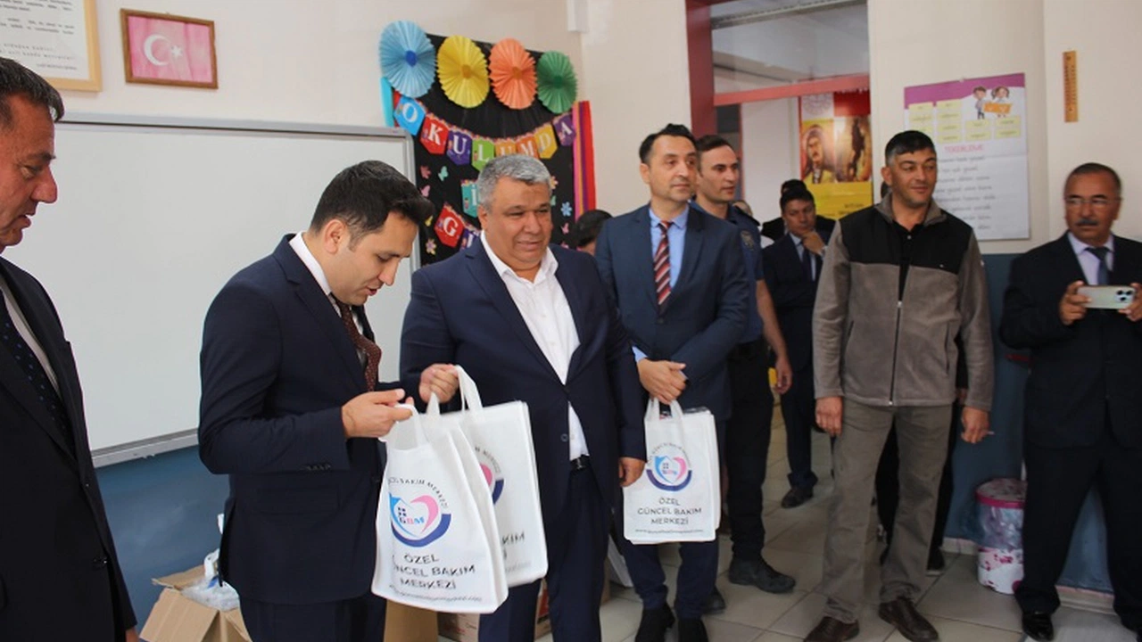 Konuşmaların ardından kırtasiye ve çantalar öğrencilere hediye edildi.