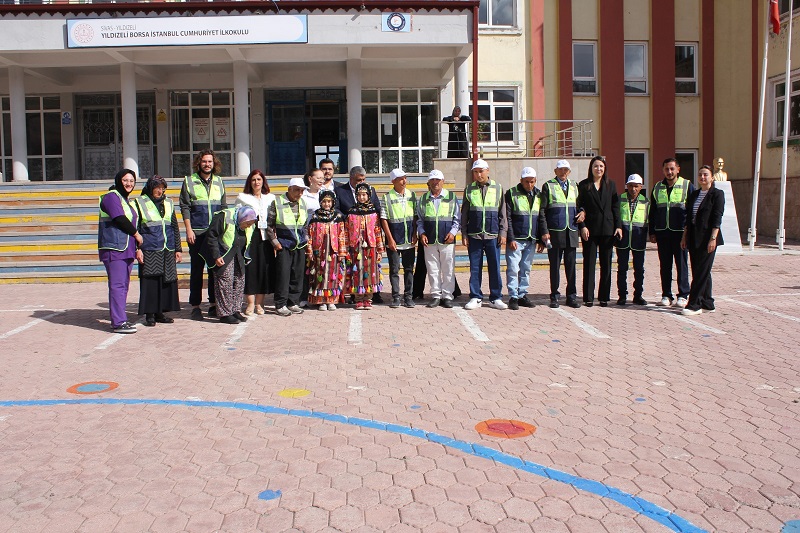Yıldızeli Borsa İstanbul Cumhuriyet İlkokulu'nda gerçekleştirilen programda konuşan Kaymakam İsmail Bilgici, anlamlı katkı için yaşlı bakım merkezi sakinlerine teşekkür etti.