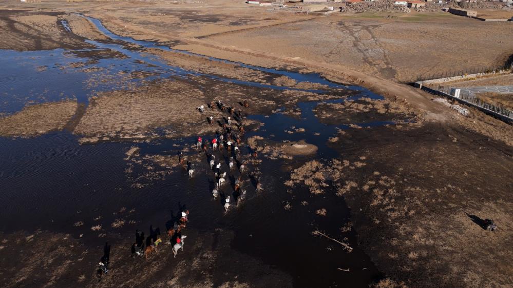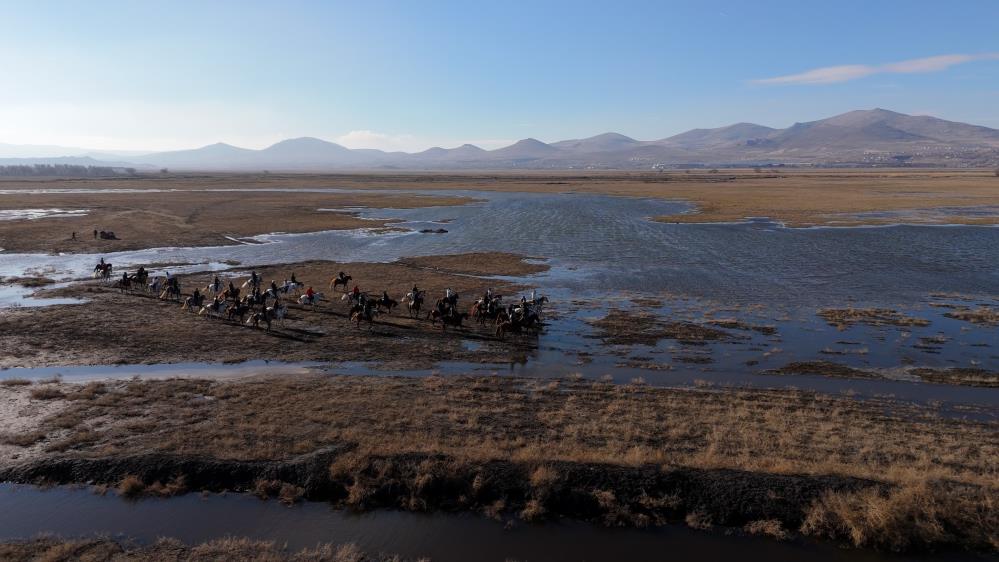 Kayseri'nin Hacılar ilçesi Hürmetçi ve Karpuzsekisi Mahalleleri'nde yer alan Hürmetçi Sazlığı birçok kuş türü, yılkı atları ve doğal güzellikleri içinde barındırıyor. Avrupa, Asya ve Afrika kuş göç yolu üzerinde bulunmasından dolayı da dünya ölçeğinde küresel öneme sahip olan Hürmetç Sazlığı, yerli ve yabancı turistlerin dikkatini çekiyor. At binicilerinin de çokça tercih ettiği bir alan olan Hürmetçi Sazlığı'nda 50 at binicisi safari yaptı. Binicilerin keyifli safarisi havadan görüntülendi.