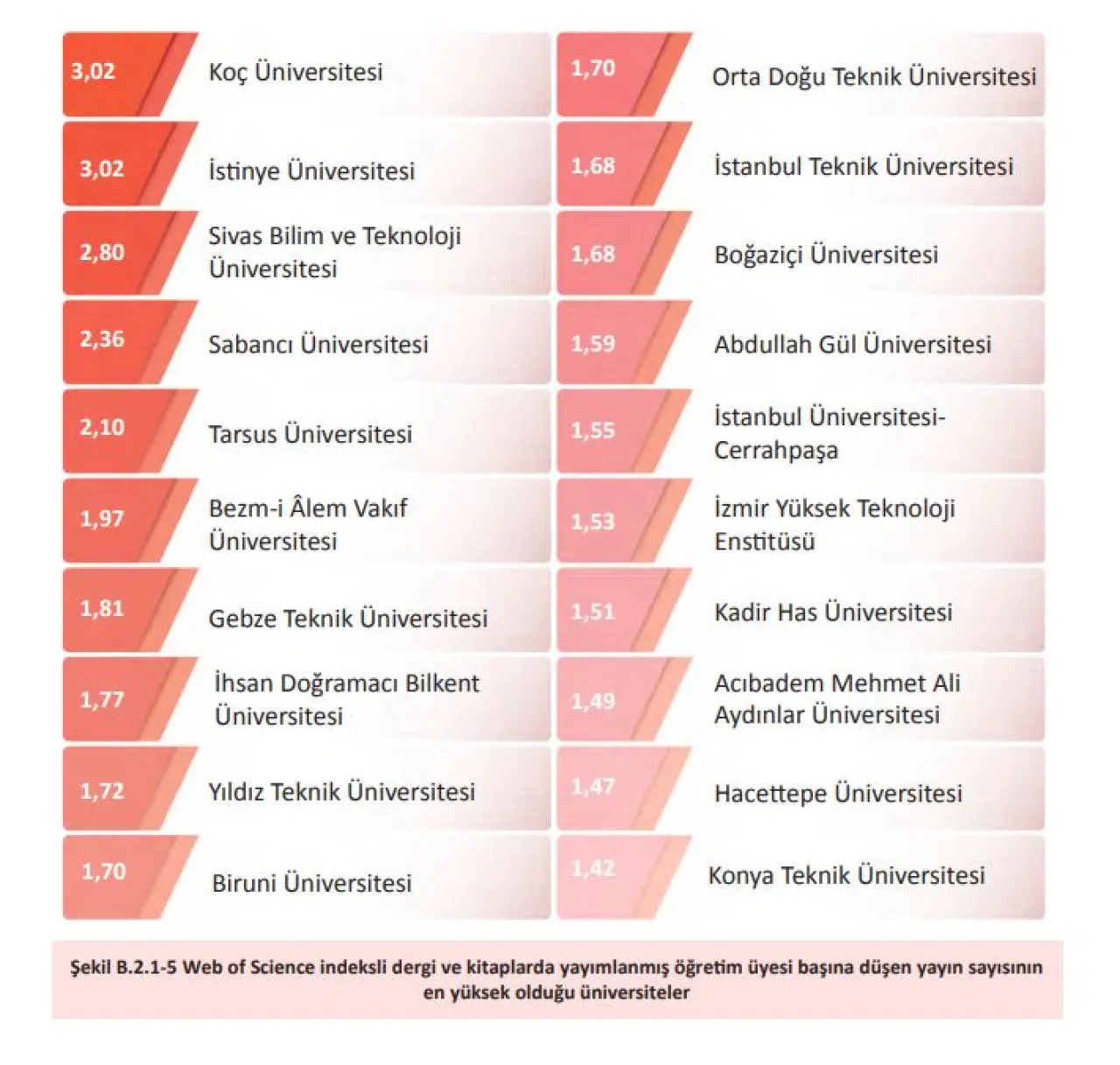 Sivas’ın başarısı sadece yerel dizinlerle sınırlı kalmadı. Uluslararası görünürlüğün en önemli ölçütlerinden biri olan Web of Science (WoS) veri tabanındaki yayınlarda da Sivas damgası hissedildi. Öğretim üyesi başına düşen yayın sayısında Türkiye'nin en saygın vakıf üniversiteleri olan Koç Üniversitesi (3,02) ve İstinye Üniversitesi (3,02) zirveyi paylaşırken, hemen arkalarından 2,80 oranla Sivas Bilim ve Teknoloji Üniversitesi geldi. Bu tablo, Sivas’taki akademik kadronun küresel ölçekte nasıl bir rekabet gücüne sahip olduğunu ve araştırma-inovasyon yatırımlarının karşılığını verdiğini tescilledi. Sivas Cumhuriyet Üniversitesi de bu gelişim ekosisteminin bir parçası olarak şehrin toplam başarısına önemli katkılar sundu.