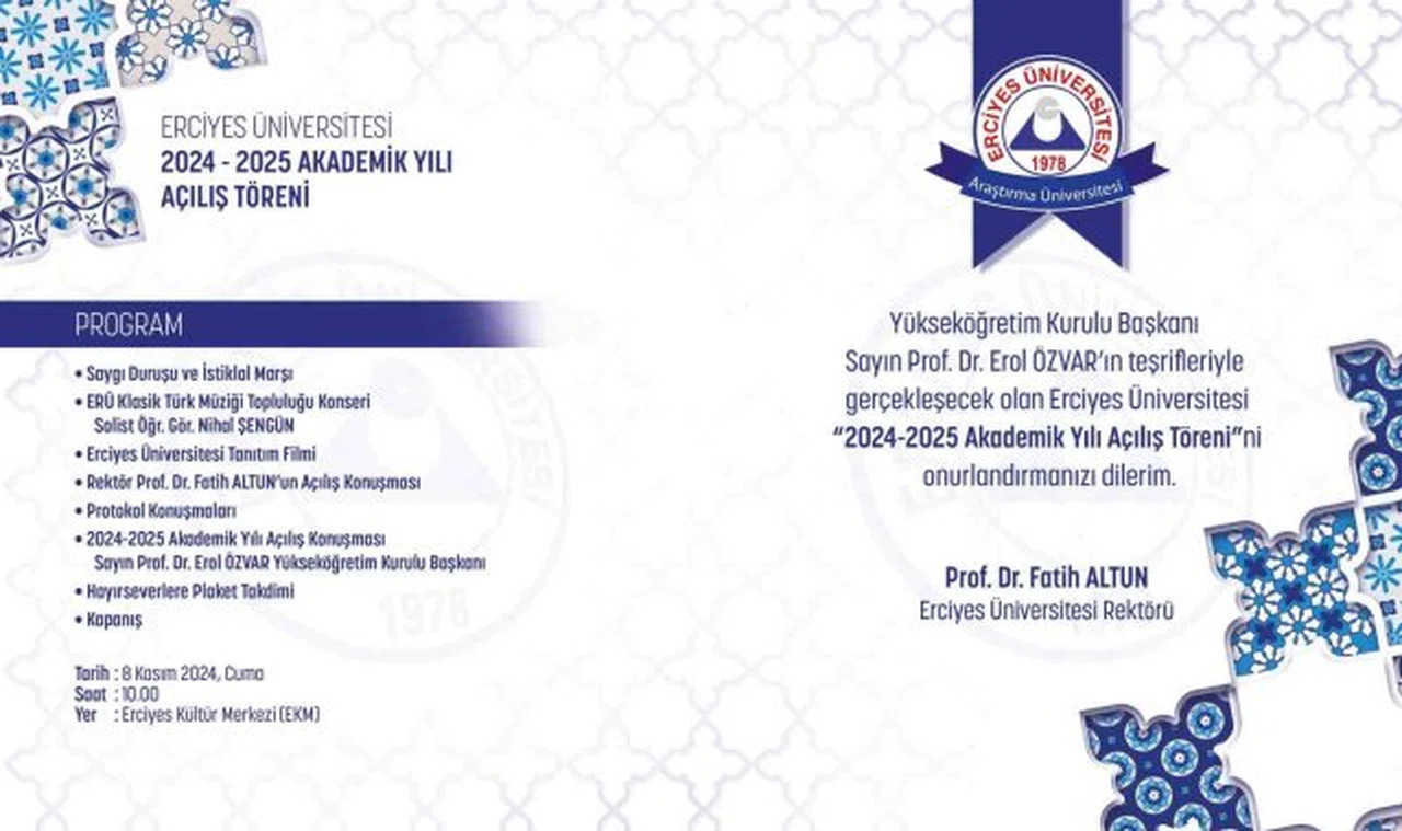 Yükseköğretim Kurulu (YÖK) Başkanı Prof. Dr. Erol Özvar, Erciyes Üniversitesi (ERÜ) 2024-2025 Akademik Yıl Açılış Töreni'ne katılmak üzere Kayseri'ye geliyor.