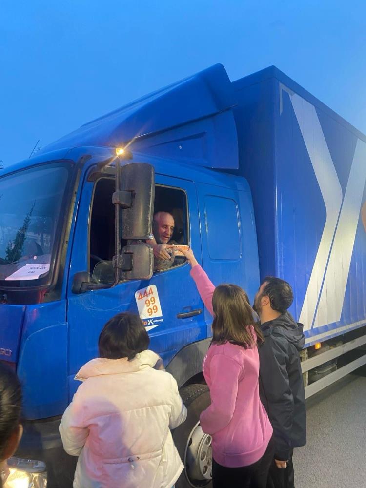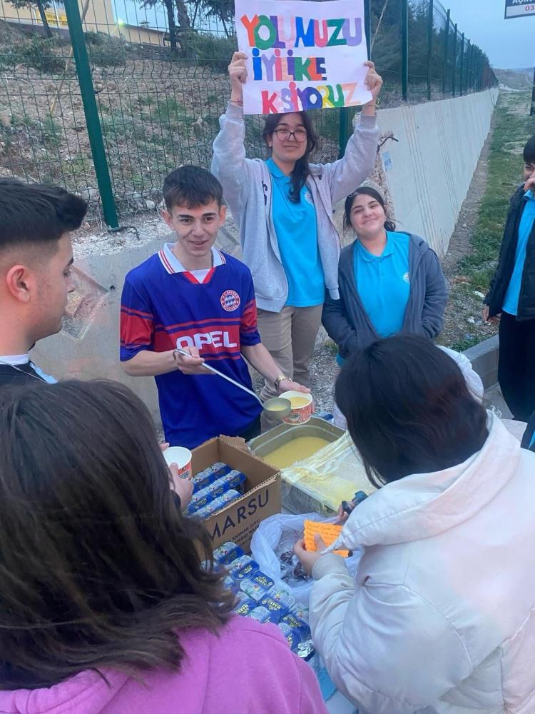 Öğrenciler, iyilik kazanımlarını pekiştirirken, yolda olan şoför ve yolcular ikramdan duyduğu memnuniyetlerini ve mutluluklarını ifade etti.