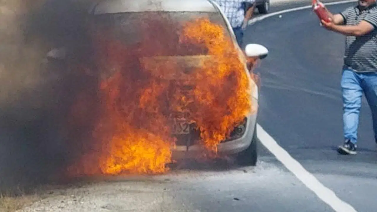 Yozgat’tan Kırşehir yönüne seyir halinde olan bir otomobil, Yerköy ilçesi ile Çiçekdağı sınırında aniden alev aldı. 42 ARR 932 plakalı Kia marka aracın ön kaput kısmından yükselen alevleri fark eden çevredeki kişiler, yangın söndürme tüpleriyle müdahale etmeye çalıştı.