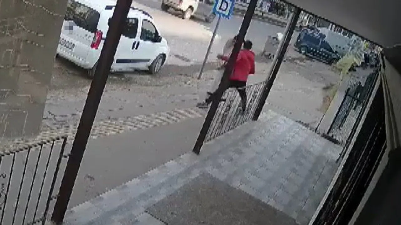 Kahramanmaraş'ın Pazarcık ilçesinde yolda yürüyen kadına saldırı anı güvenlik kamerasına yansıdı.