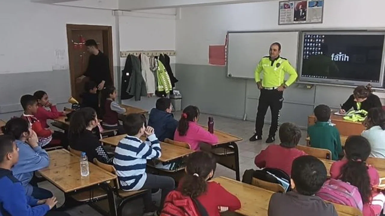 Erzincan'ın Refahiye ilçesinde trafik polislerince öğrencilere 'yolların kralı olmaz, kuralı olur' mottosuyla trafik eğitimi verildi.