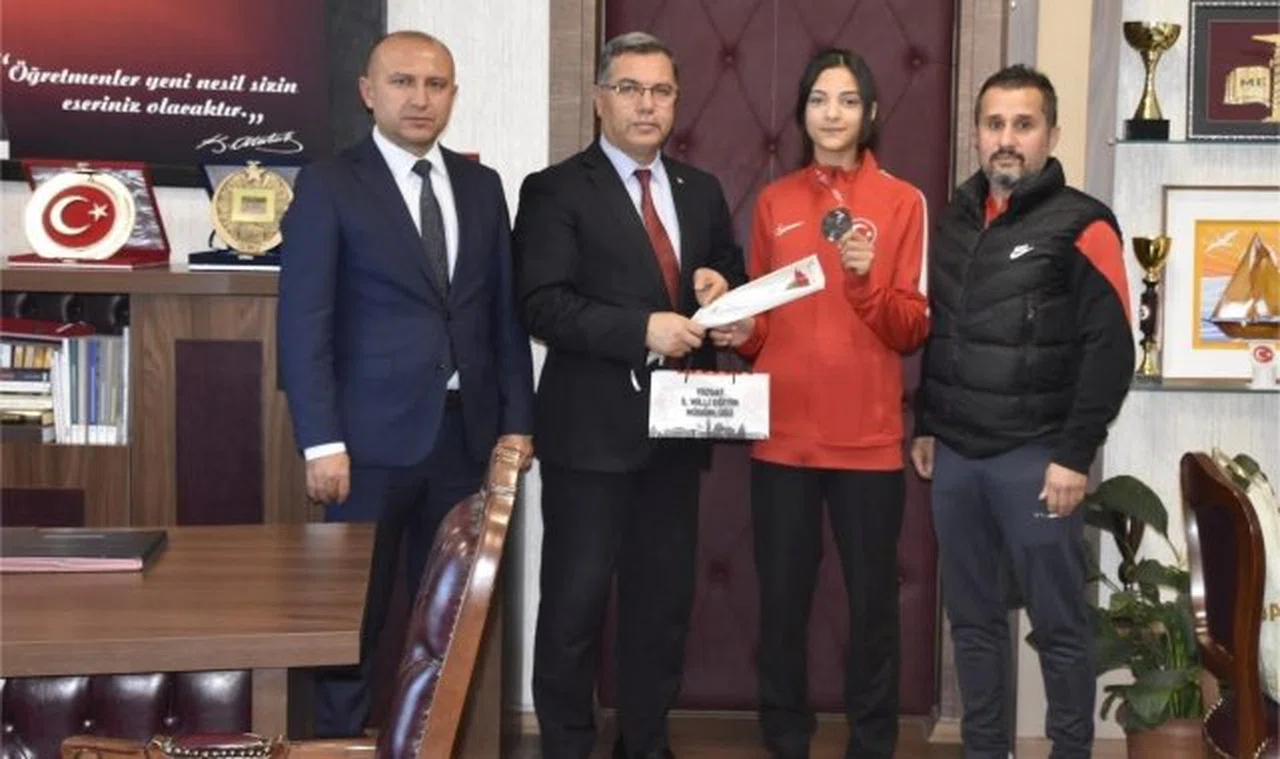 Arnavutluk Tiran'da düzenlenen Avrupa Yıldızlar Taekwondo Şampiyonası'nda üçüncü olarak bronz madalya kazanan Yerköylü öğrenci İrem Örül, başarısıyla ilçenin gururu oldu. Yerköy İlçe Milli Eğitim Müdürü Necmettin Sağlam ve İrem Örül, Yozgat Milli Eğitim Müdürü İsmail Altınkaynak'ı makamında ziyaret ederek bu büyük başarıyı paylaştılar. İl Milli Eğitim Müdürü İsmail Altınkaynak, makamında ağırladığı İrem Örül ve öğrencinin yetişmesinde emeği geçen Ahmet Gün'ü tebrik etti. Öğrenciye hediye takdim eden Altınkaynak, başarılarının artarak devam etmesini diledi.