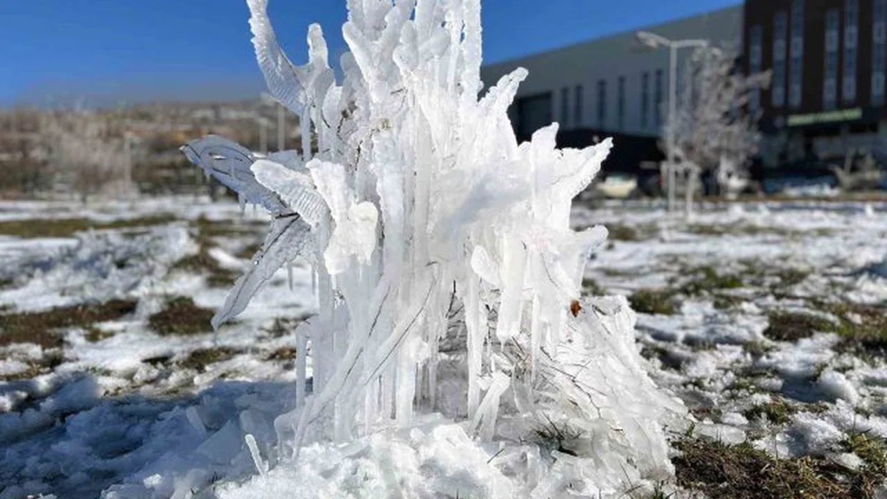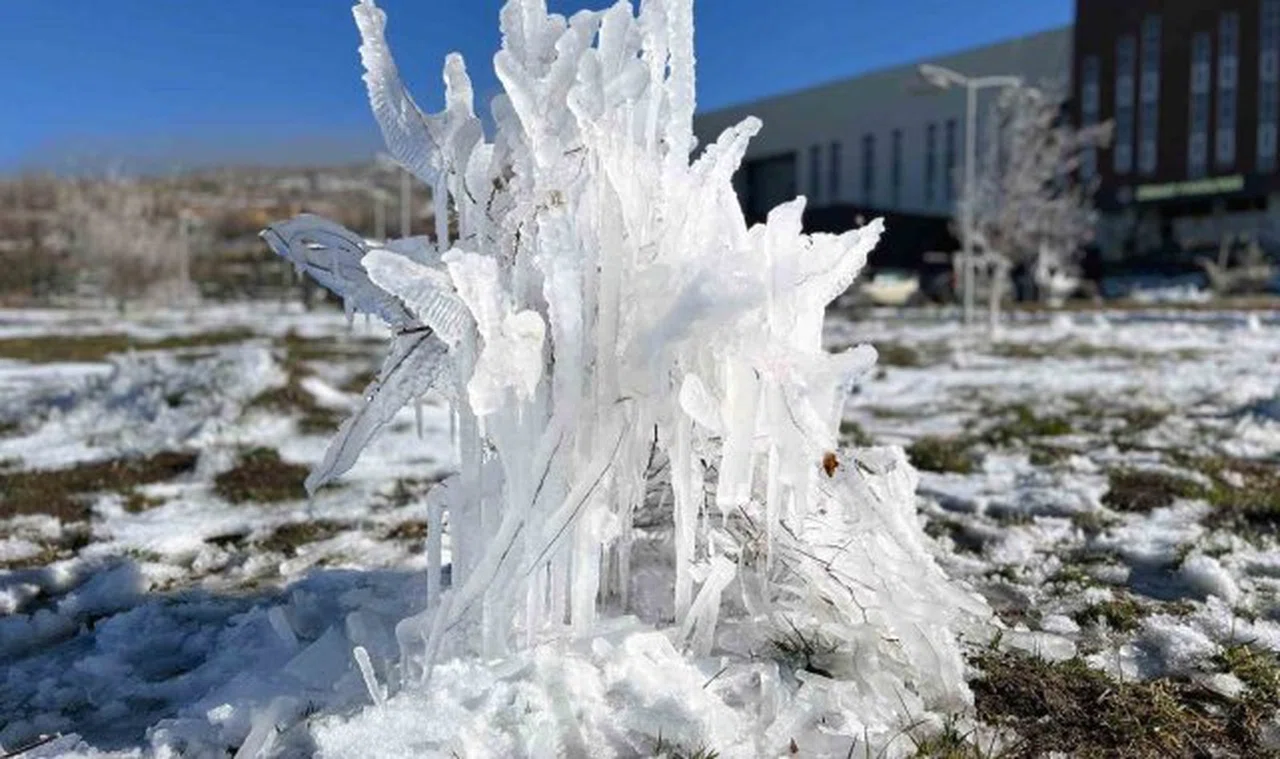 Kent genelinde hava sıcaklıklarının sıfırın altına düşmesiyle birlikte ağaç dallarında ve çalılar üzerinde oluşan buz sarkıkları, buzdan heykelleri andırıyor.