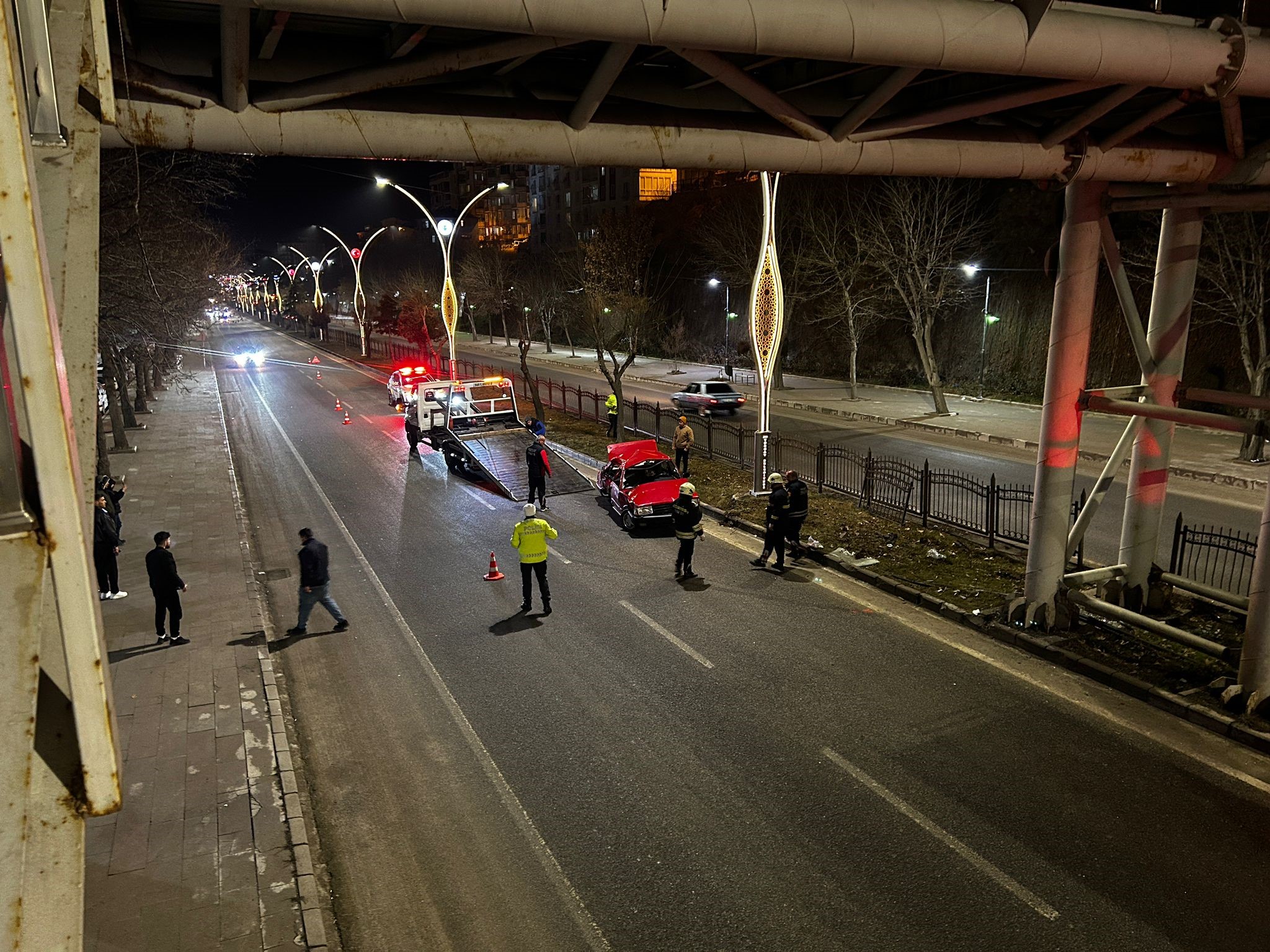 Yozgat’ta Ankara Caddesi üzerinde meydana gelen kazada, kontrolden çıkan bir otomobil üst geçide çarptı ve yan yattı. Kazada 4 kişi yaralandı.
