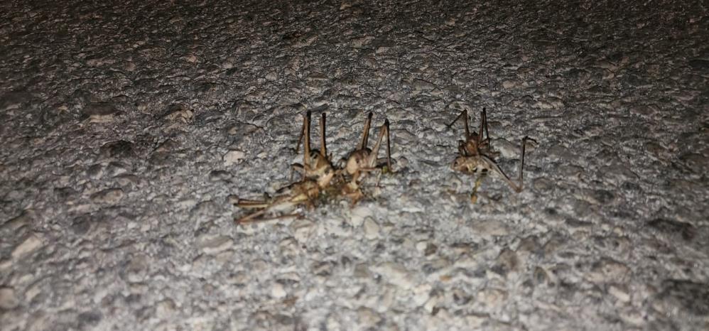 Elazığ'ın Palu ilçesinde yüzlerce çekirge yola savruldu. O anlar cep telefonu ile kaydedilirken vatandaşlar paniğe kapıldı.